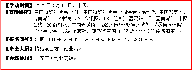 时间:[2016-08-04]????来 源:中国特许经营第一网???? 作 者:中国特许经营项目??点击:
