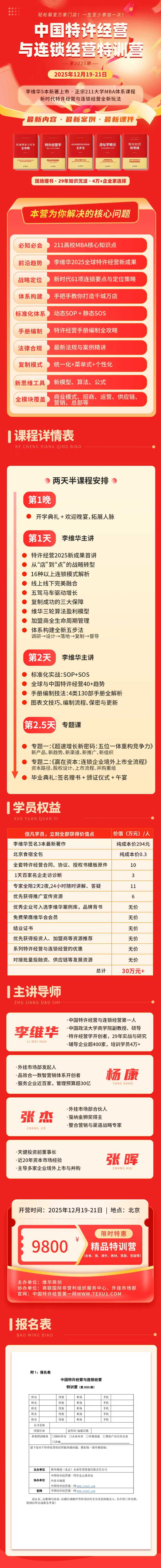 2025年12月19-21日,北京,中国特许经营与连锁经营特训营报名通道开启!